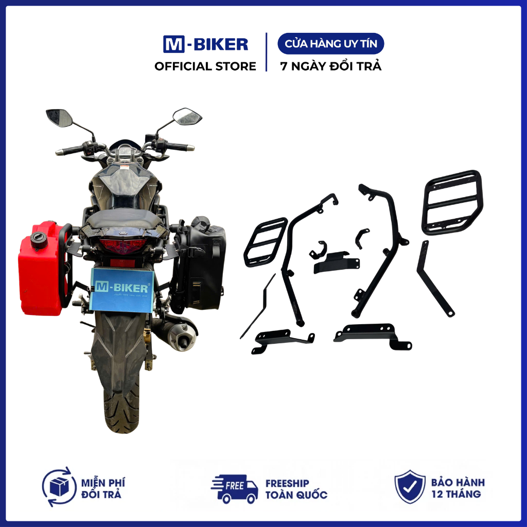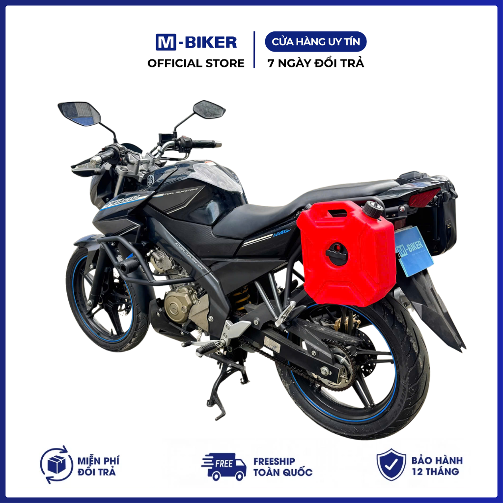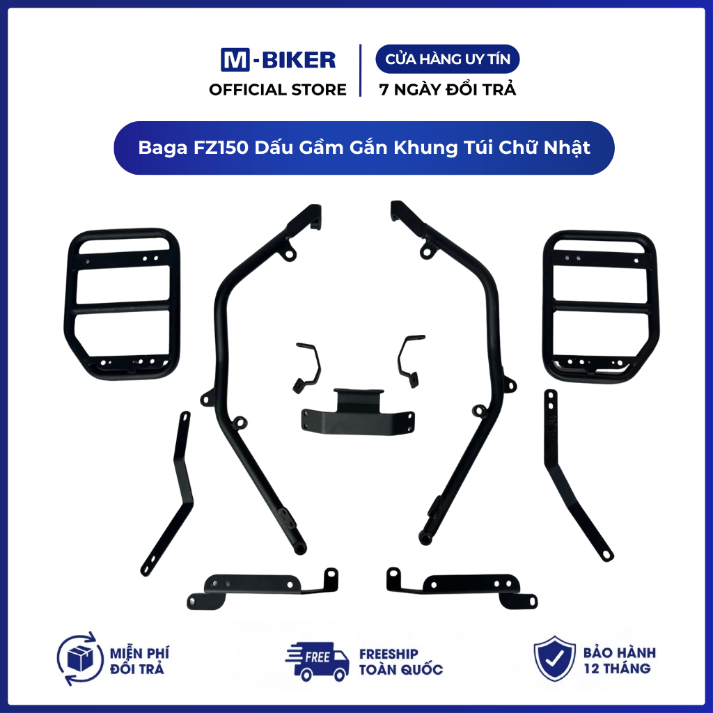 – Tên: Baga FZ150 dấu gầm gắn khung túi chữ nhật + giá treo bình xăng dự phòng M-Biker